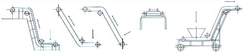 1.上水平段:為了適應不同的卸料高度的要求,頭架分為低頭架(頭架高度H0=1000mm),中式頭架(頭架高度H0=1100~1500mm)和高式頭架(頭架高度H0=1600~2000mm)。并與之相應,在上水平段分別配用低式凸弧段機架和低式中機架支腿(配用頭架高度H0=1000mm),中式凸弧段機架和中式中間架支腿(配用頭架高度H0=1100~1500mm),高式凸弧段機架和高式中間架支腿(配用頭架高度H0=1600~2000mm)。